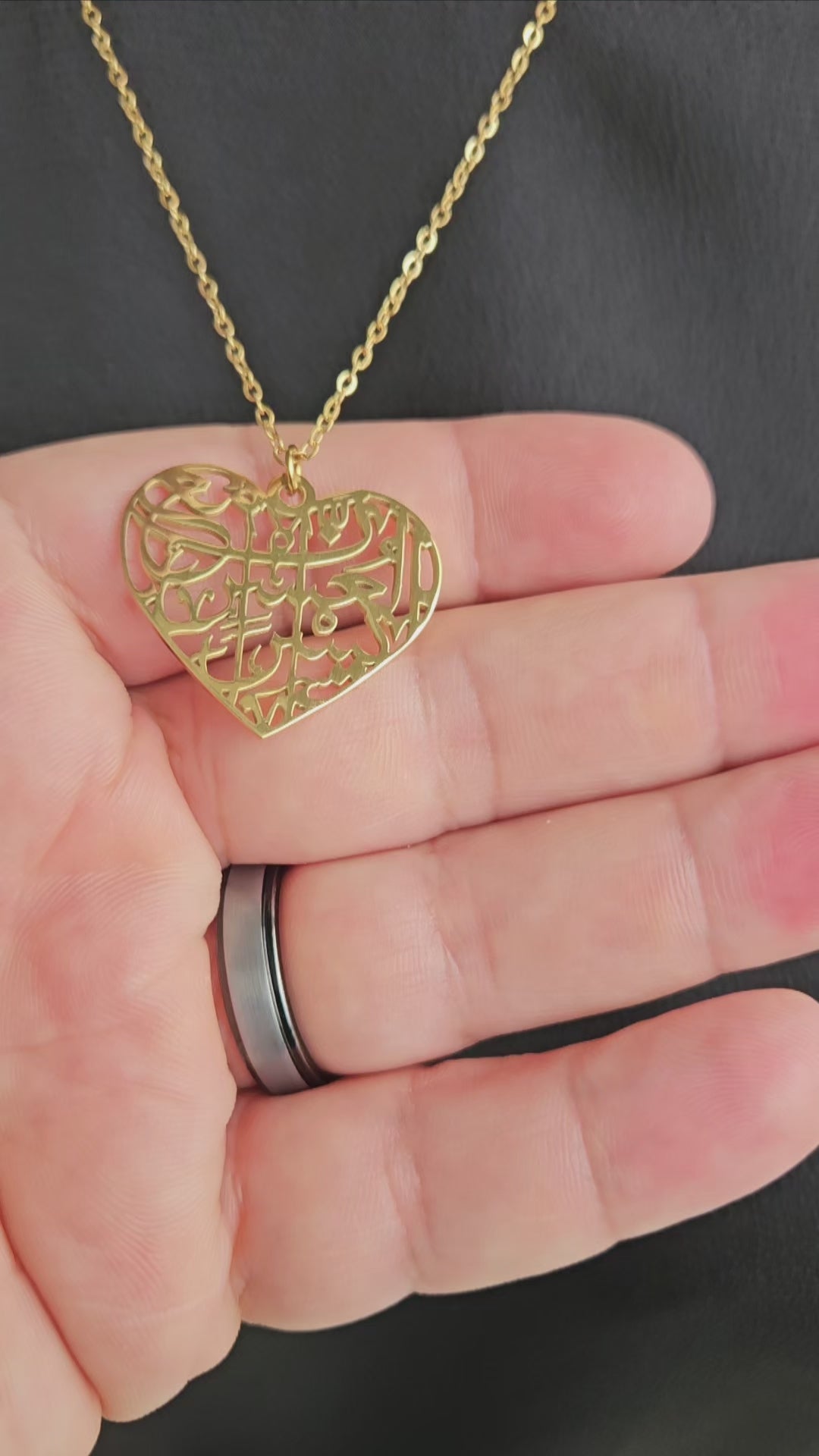 “Verily with Every Hardship Comes Ease” Heart Necklace with Arabic Calligraphy